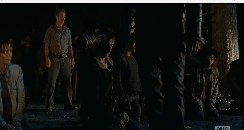 lm 234 omg line up w lucille in forefront Published May 31, 2016 at 1063 × 570 in The Walking Dead, Season 6, Ep. 16, “Last Day On Earth”