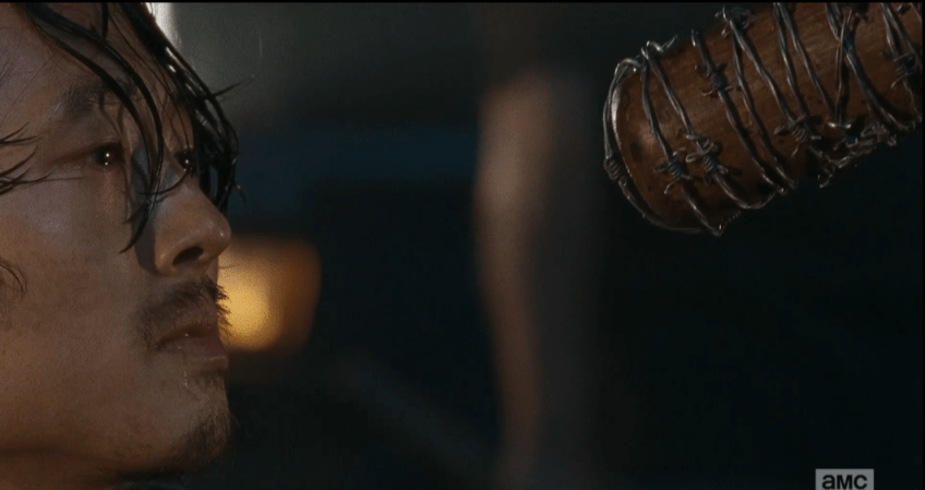 lm 276 bat glenn Published May 31, 2016 at 1061 × 562 in The Walking Dead, Season 6, Ep. 16, “Last Day On Earth”