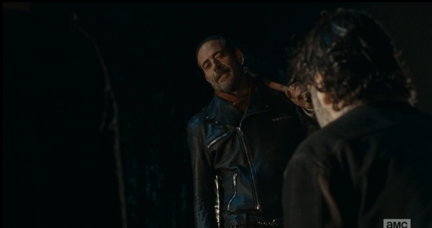 lm 79 negan looks down at rick Published May 28, 2016 at 1064 × 562 in The Walking Dead, Season 6, Ep. 16, “Last Day On Earth”