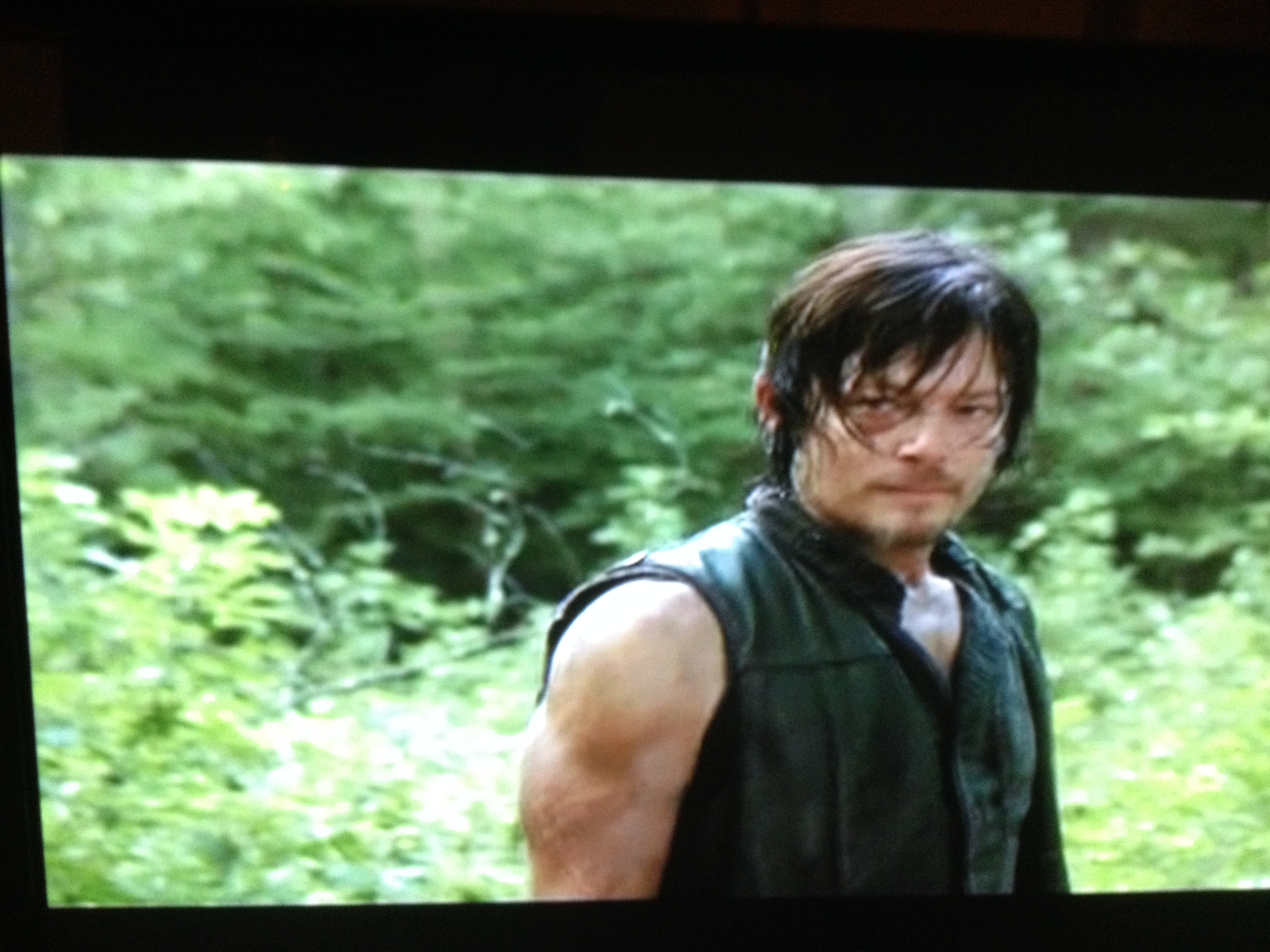 Rick looks at Daryl, who turns to look at the bottles of water on the table, which are indeed the same brand as the bottled water on the road. Daryl whirls back on Aaron, steps towards him. “How long you people been followin’ us?” Daryl growls down at him.